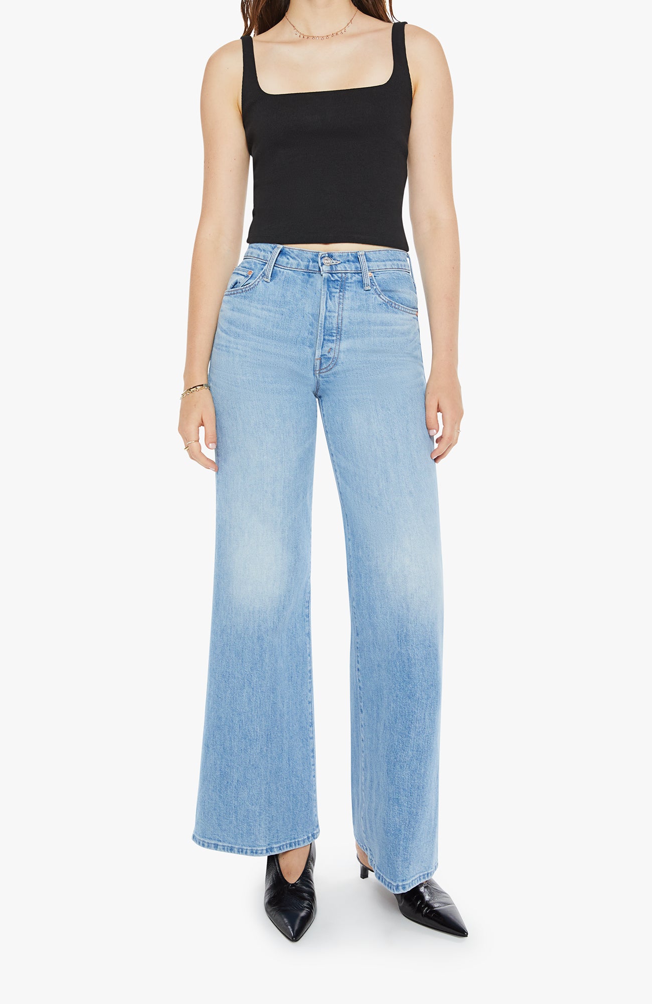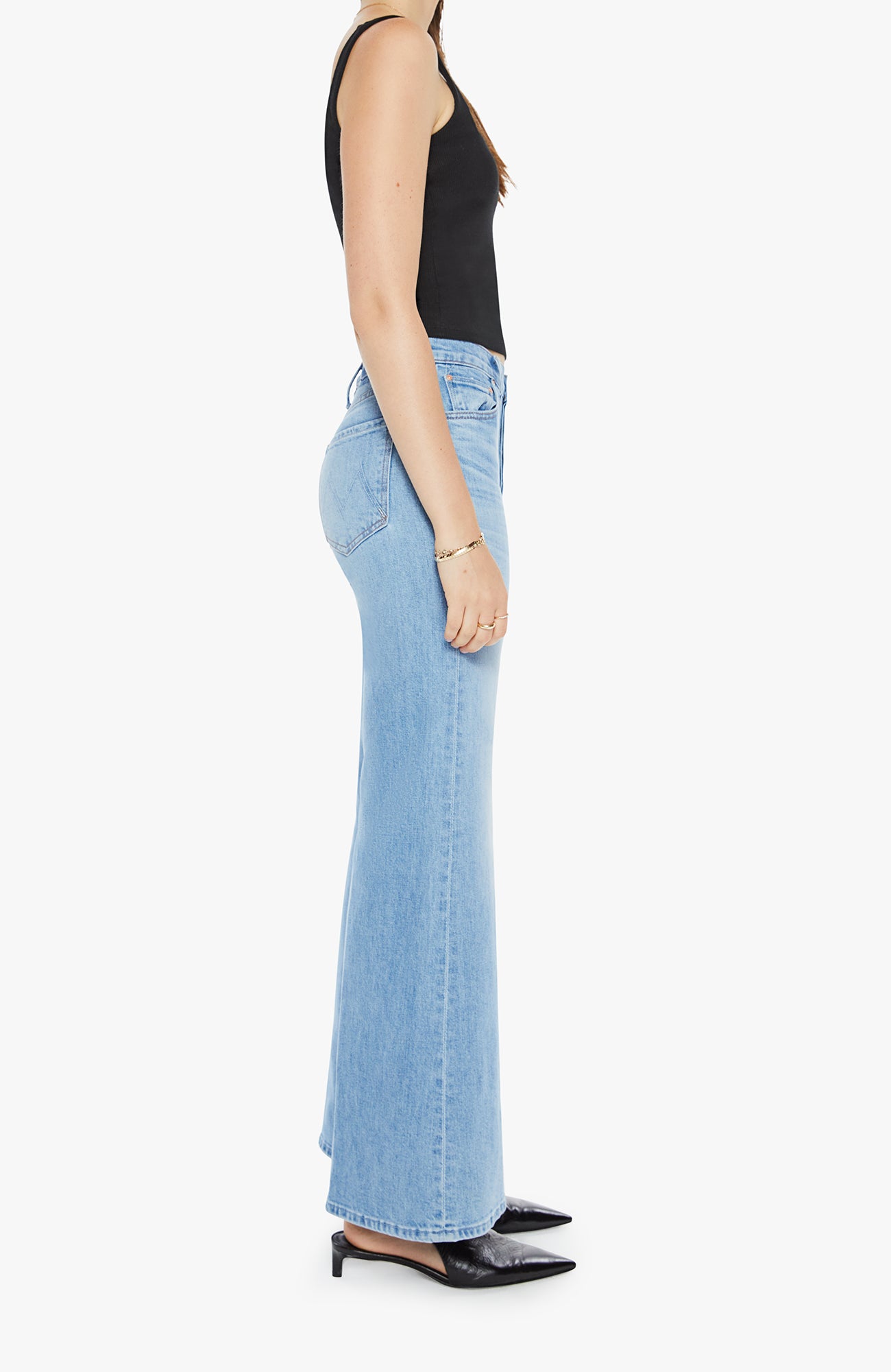 The missing piece. This iconic high-waisted wide leg has a button fly, 31-inch inseam and clean hem. Made from semi-rigid SUPERIOR denim, Puzzled is light blue with whiskering and fading at the knees.