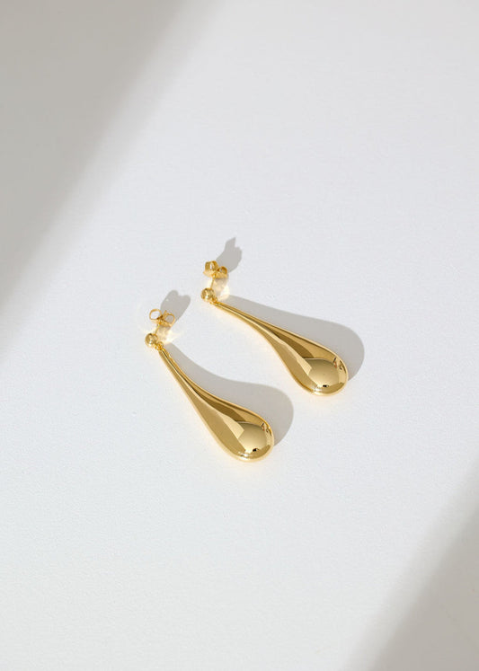 GOLD LONG HOLLOW FORM TEAR DROP STUD EARRINGS