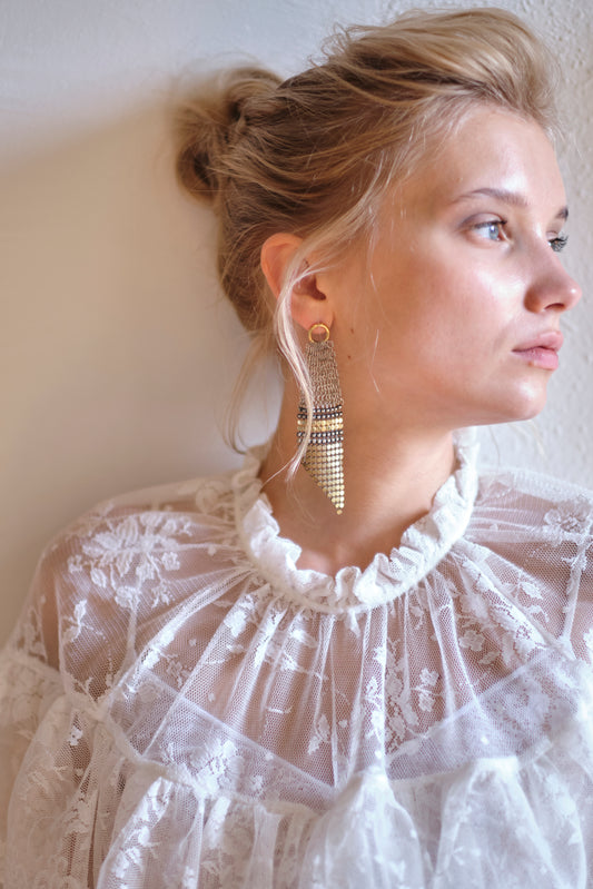 "JEANNE" DIAGONAL EARRINGS SILVER/GREY/GOLD