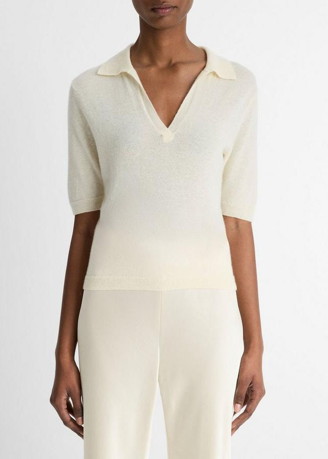 A transitional staple, our short-sleeve polo sweater is crafted from an ultra-soft and airy blend of cashmere and silk.