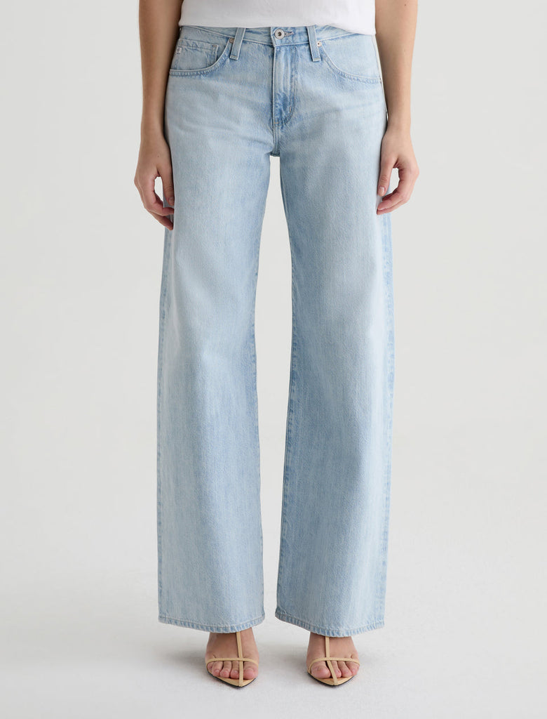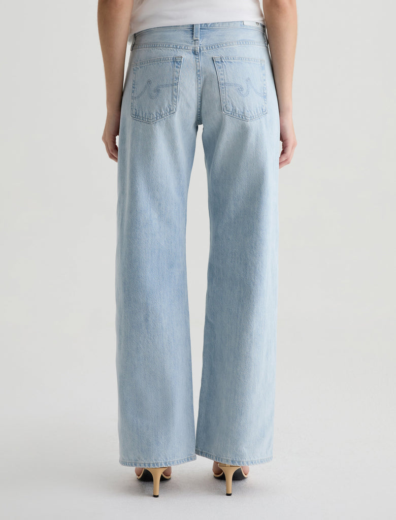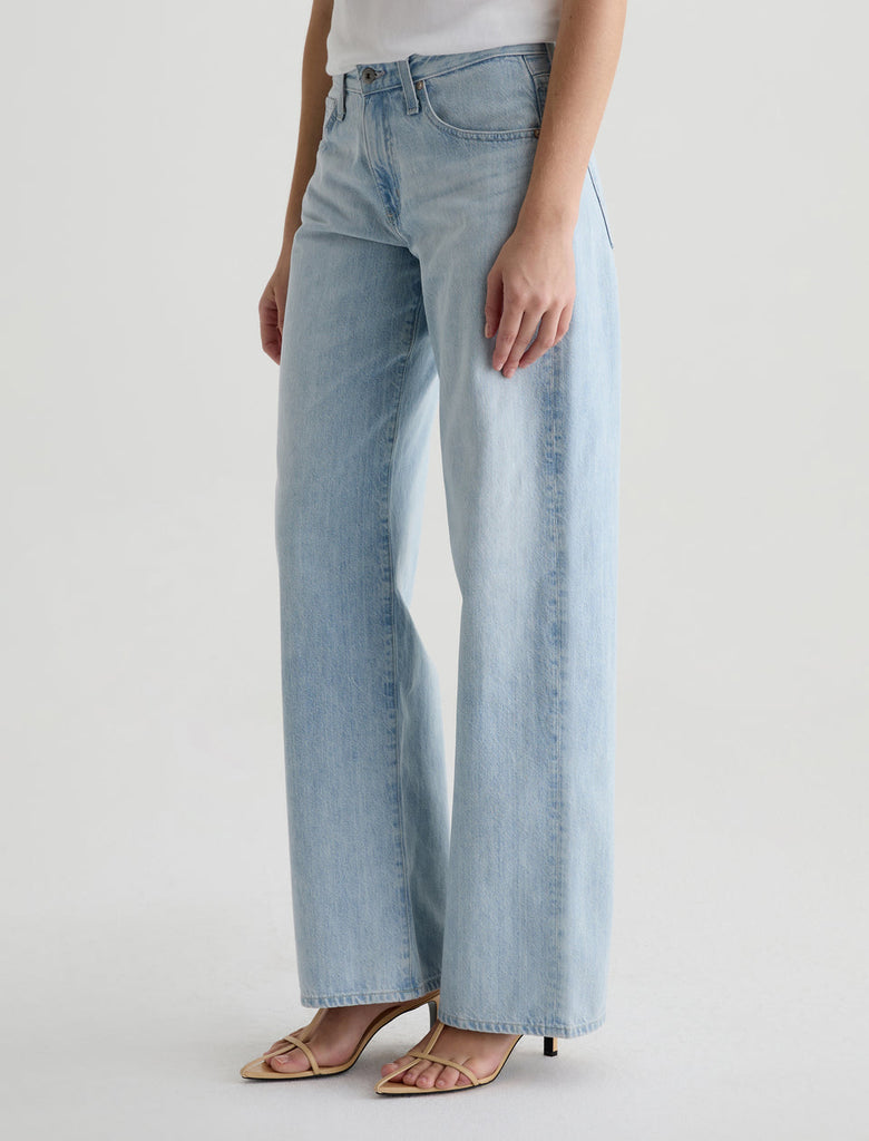 Adria is a low-rise wide-leg jean made from rigid Italian denim that holds its shape over time. A non-stretch fit, it offers an authentic denim feel with a structured drape. Finished in a light wash for a lived-in look.