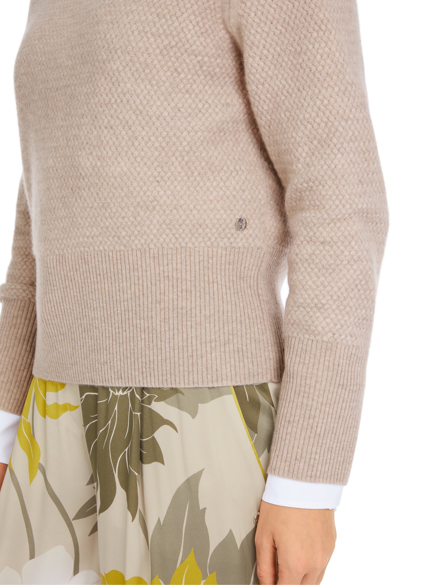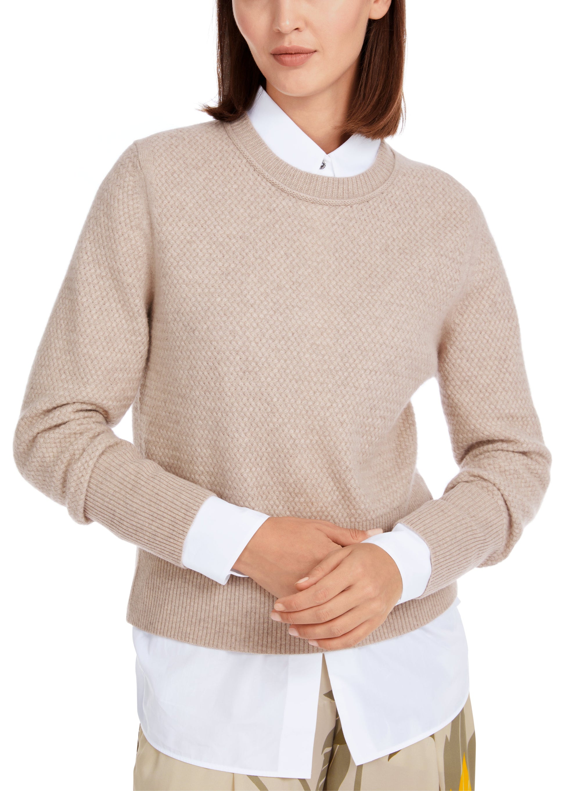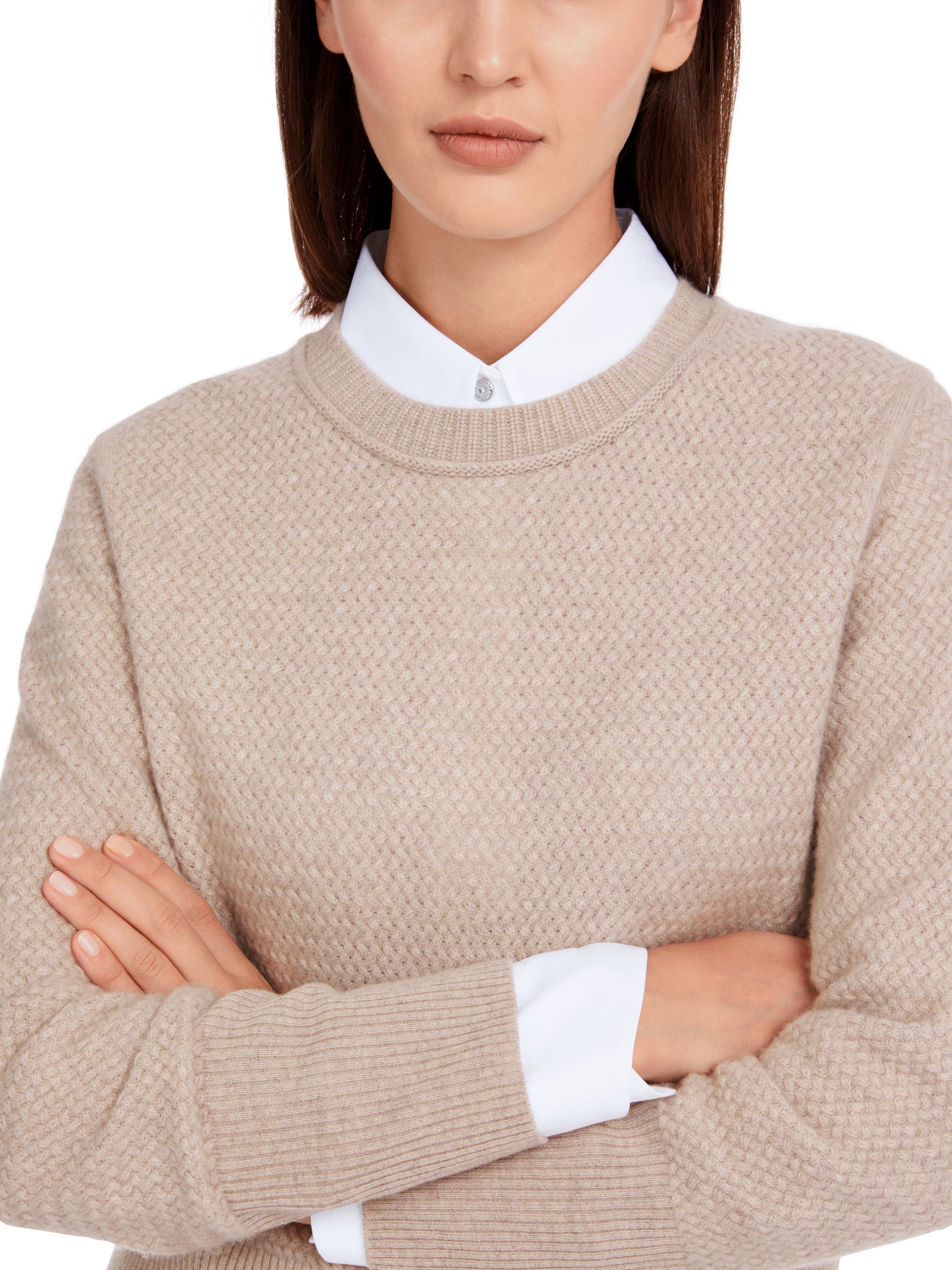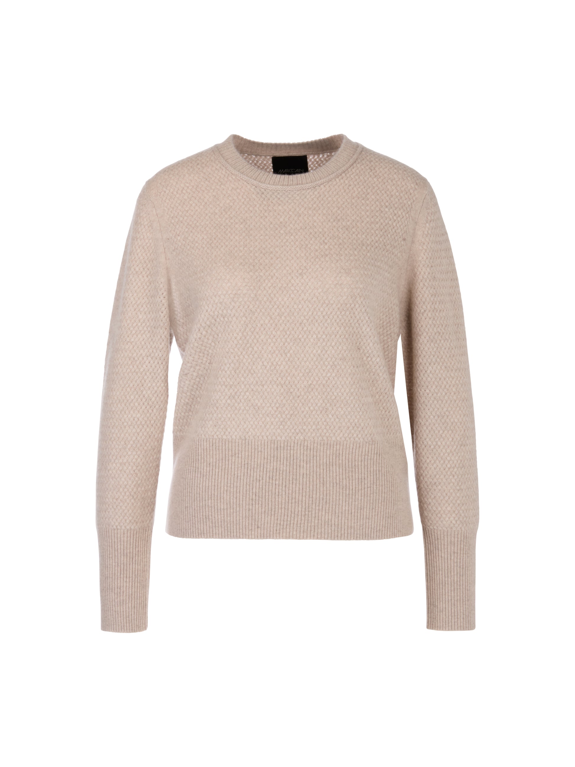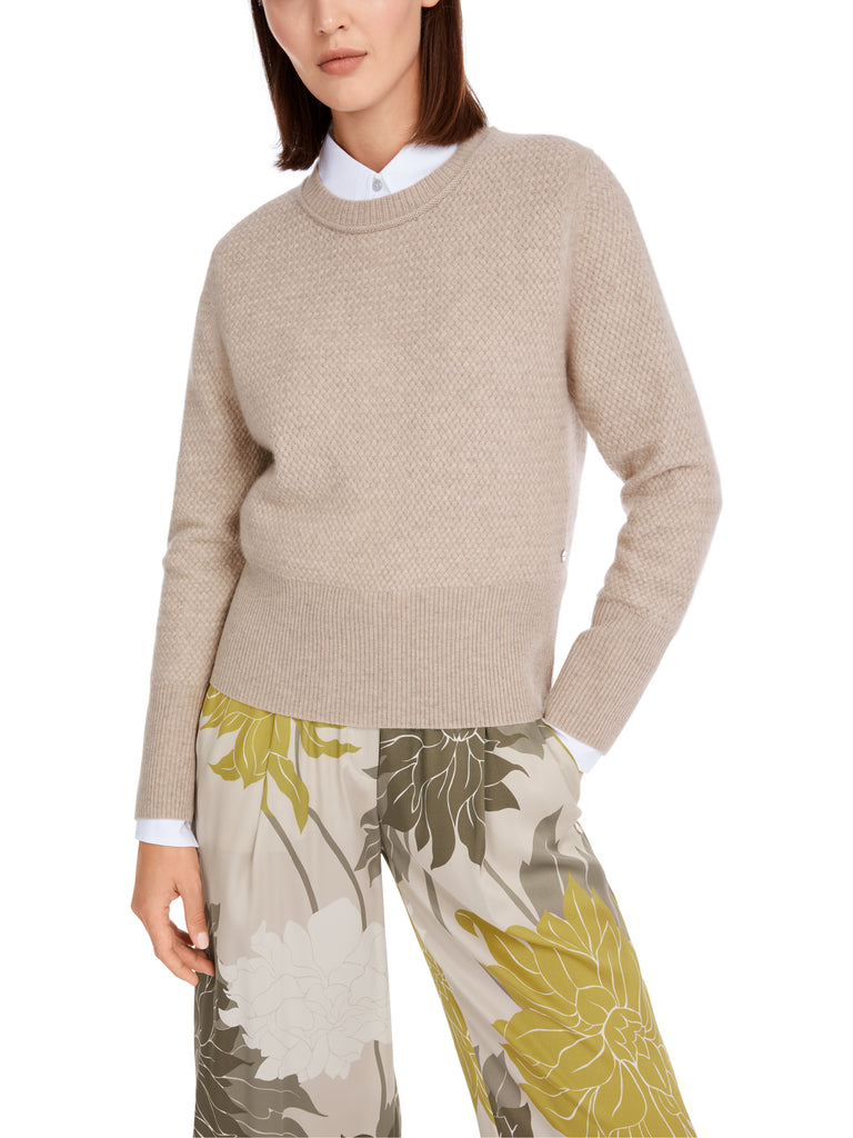This cashmere sweater impresses with its cozy, soft quality. The fine all-over cable pattern is its eye-catching feature. This sweater has a relaxed fit with a round neckline. The wide ribbed cuffs on the sleeves and hem add shape.