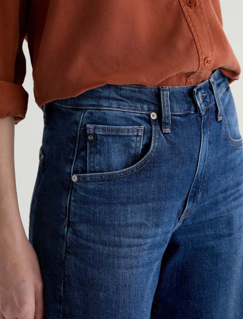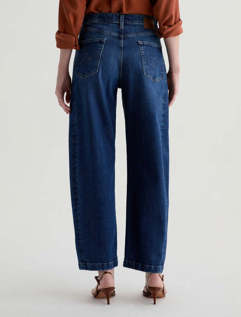 The Hattie in Vapor Wash is a high-rise barrel jean with a 28” inseam, crafted from 11 oz. Journey Denim with a comfort stretch feel. Finished in a AG Vapor Wash™ dark wash, it combines a modern silhouette with everyday ease and flexibility.