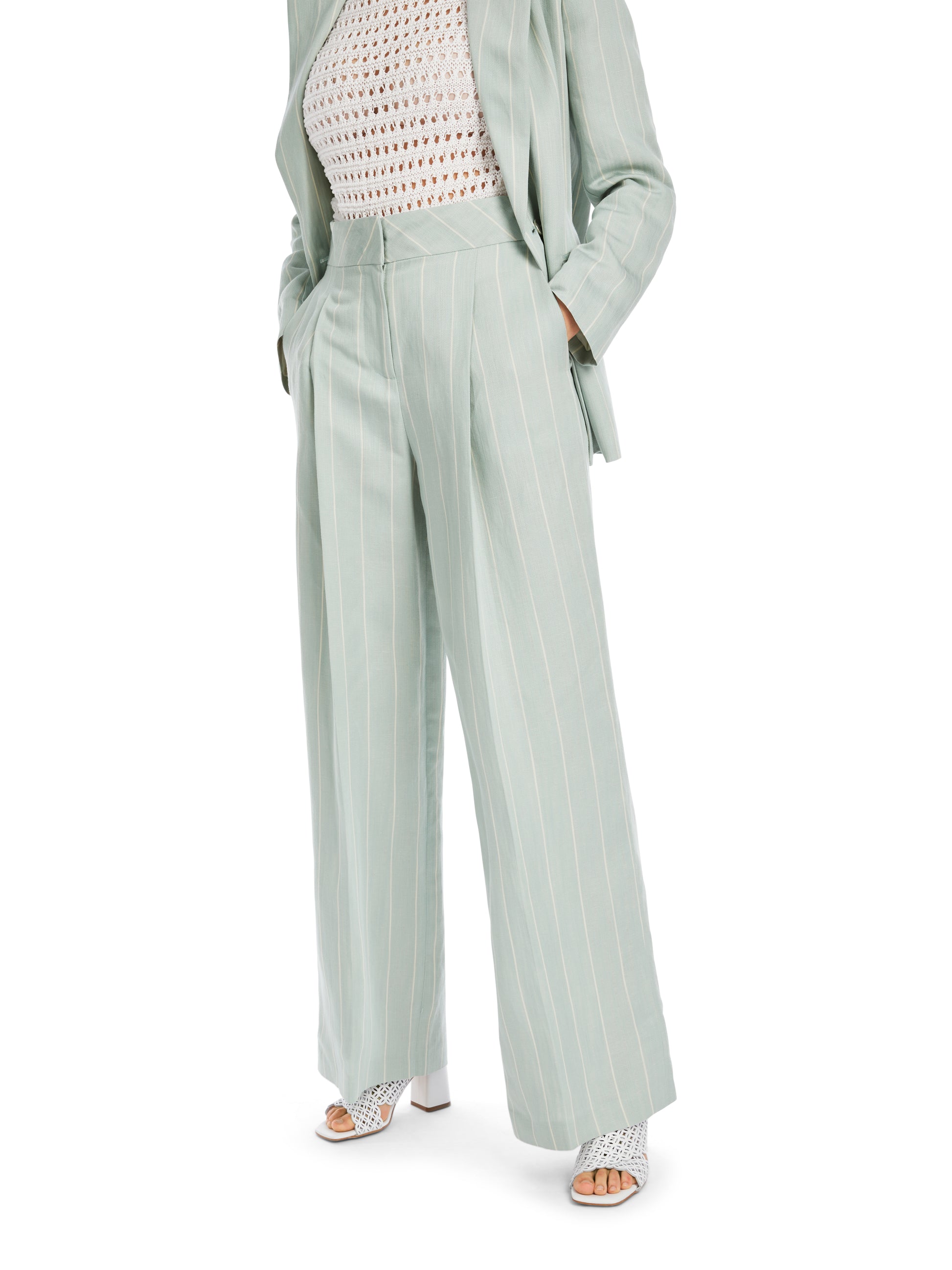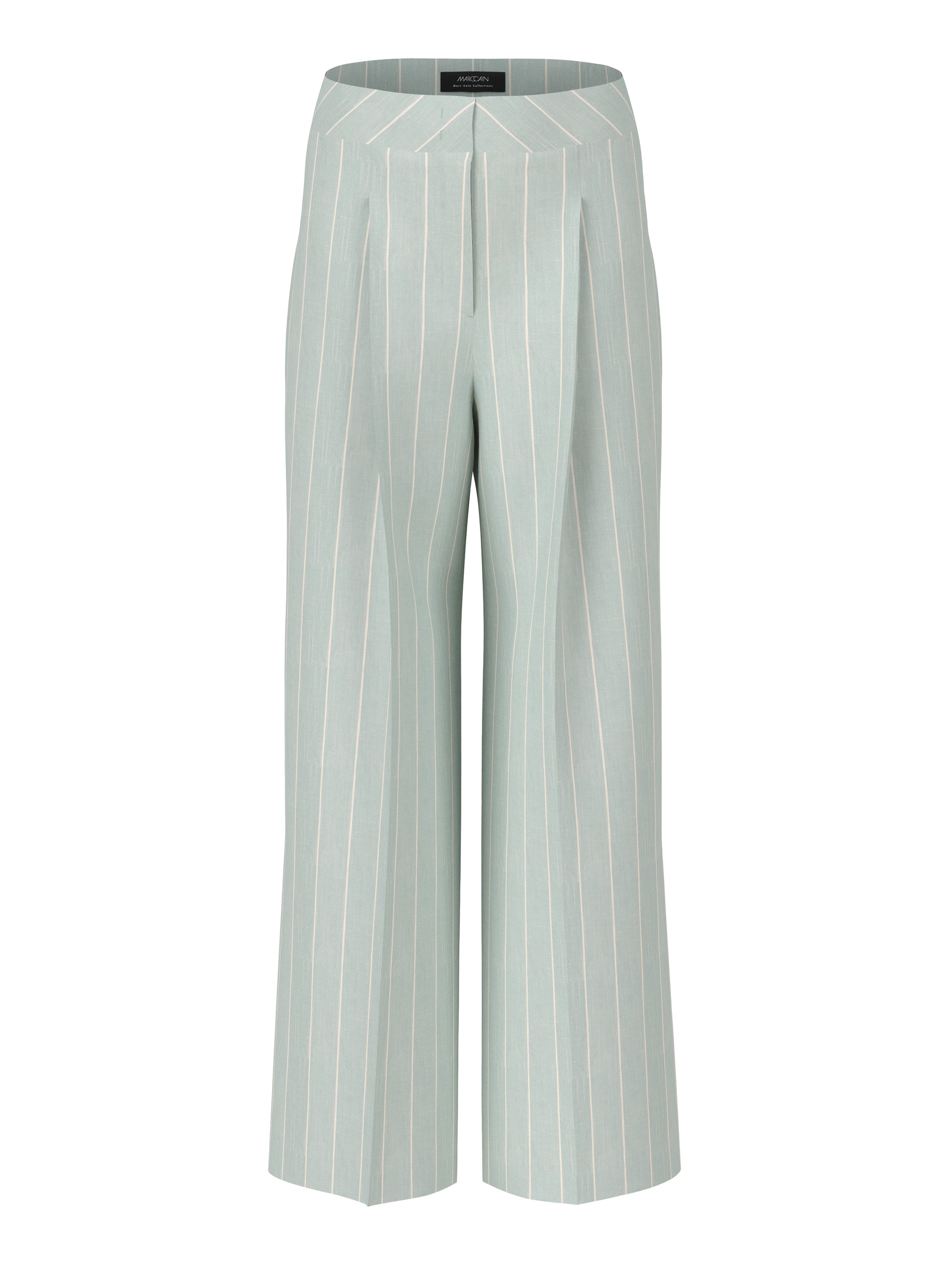 The WICHITA are a wide-cut pair of pleated trousers in the puddle pants style: the waist is high and the leg is extra-long. Made from an elegant viscose/linen blend, these trousers are soft and flowing and feel cool against the skin. The pinstripe is also cool. Great in in an overall look with the matching blazer.