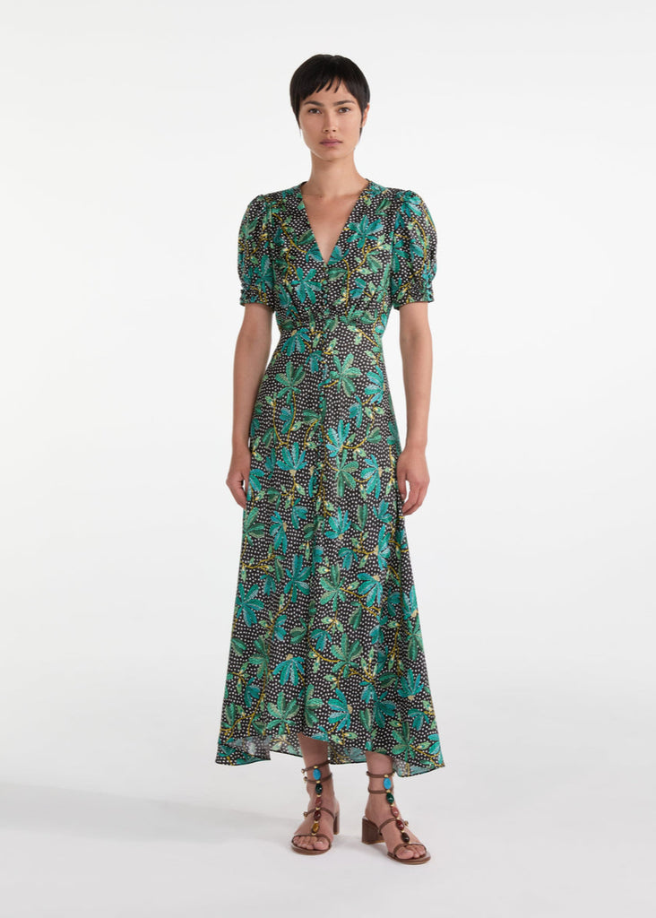 LEA LONG DRESS DOTTY STAMPED SATIN DRESS