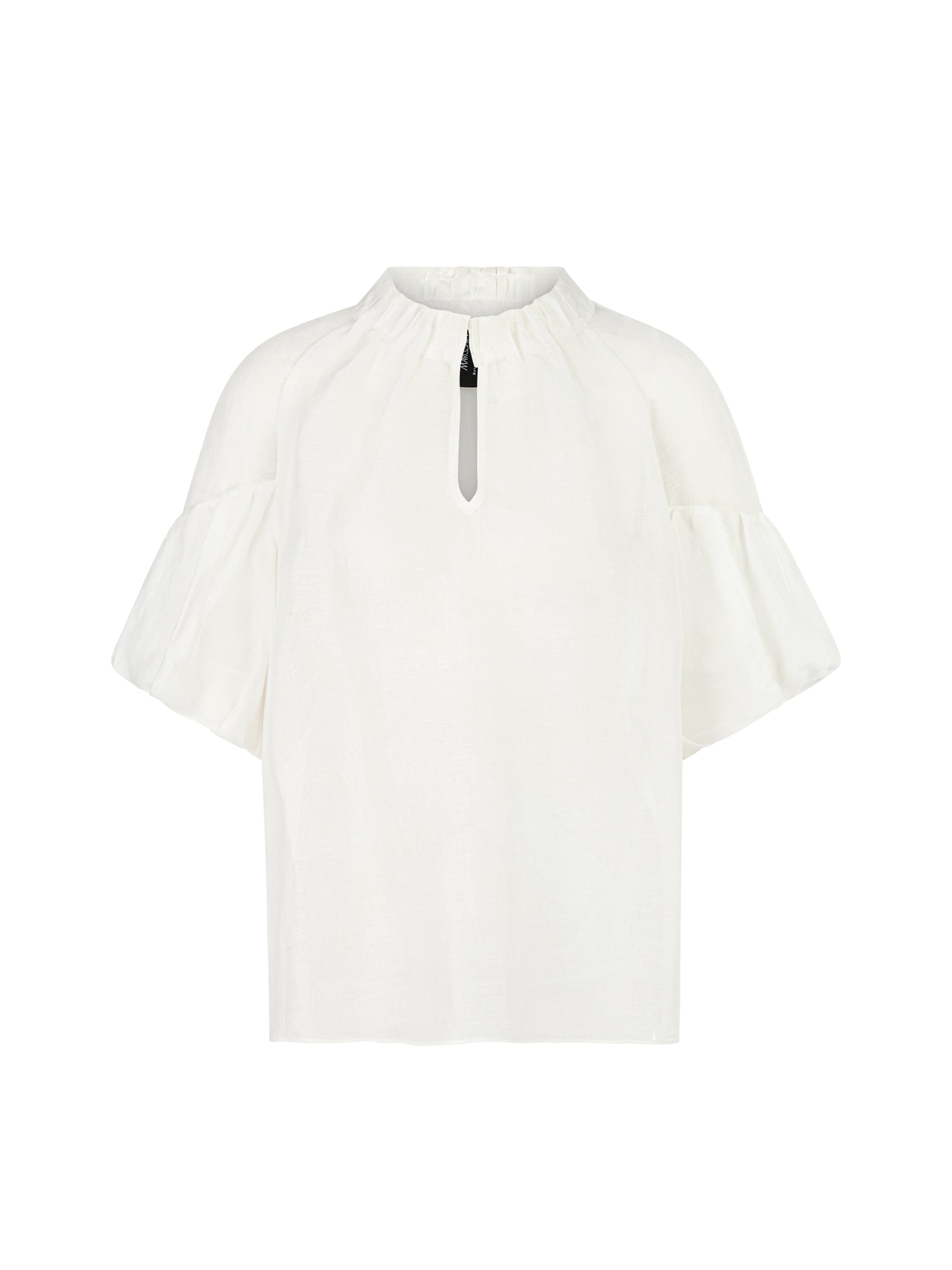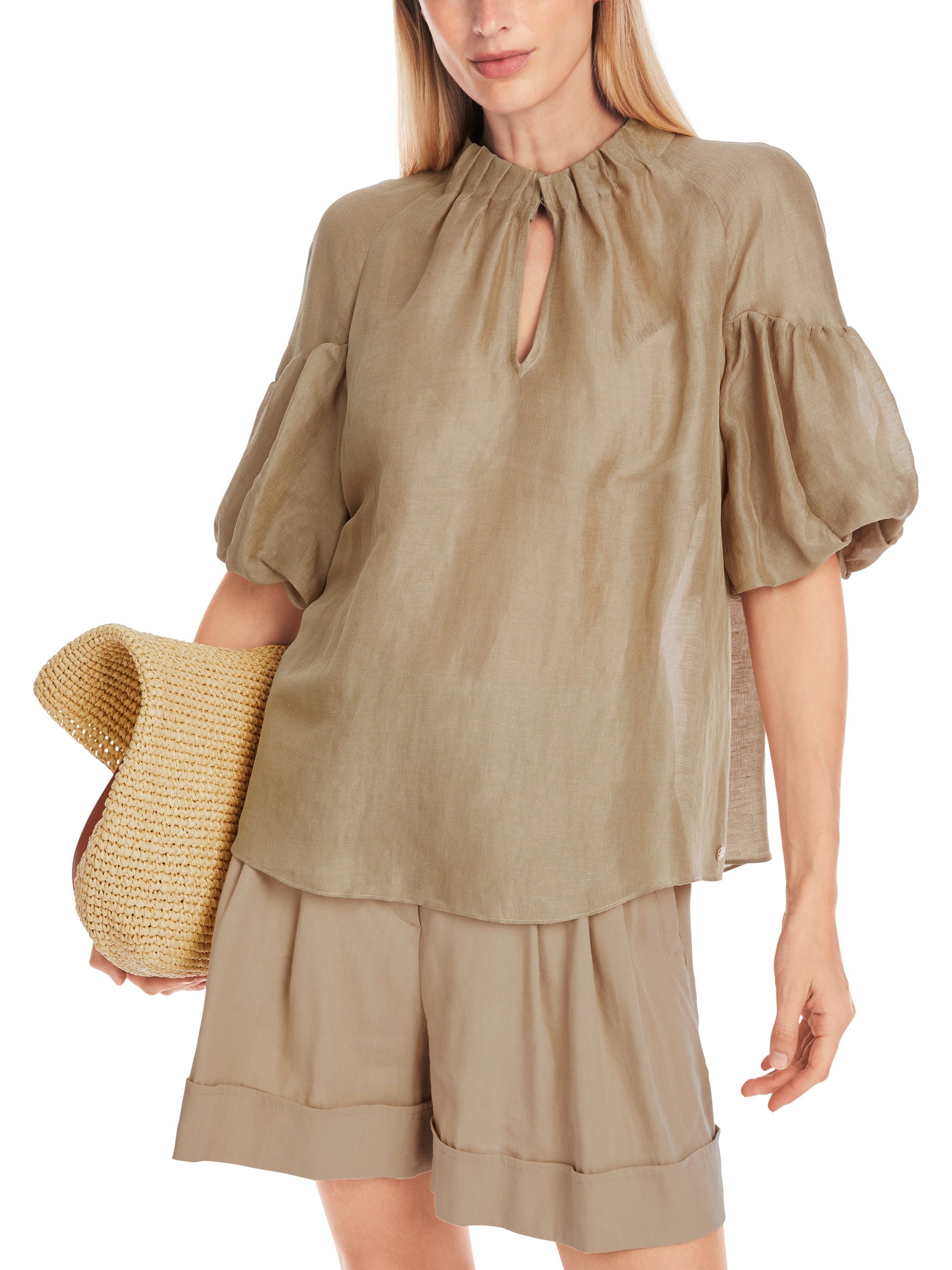 Plain blouse with balloon sleeves|Blouse in a semi-transparent linen/silk blend. Typical of linen: the slightly coarser weave. This blouse has a pleated round neck and a subtle A-line shape. The balloon sleeves are set low for emphasis. A trendy style statement with a wide variety of possible combinations.