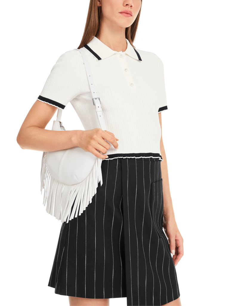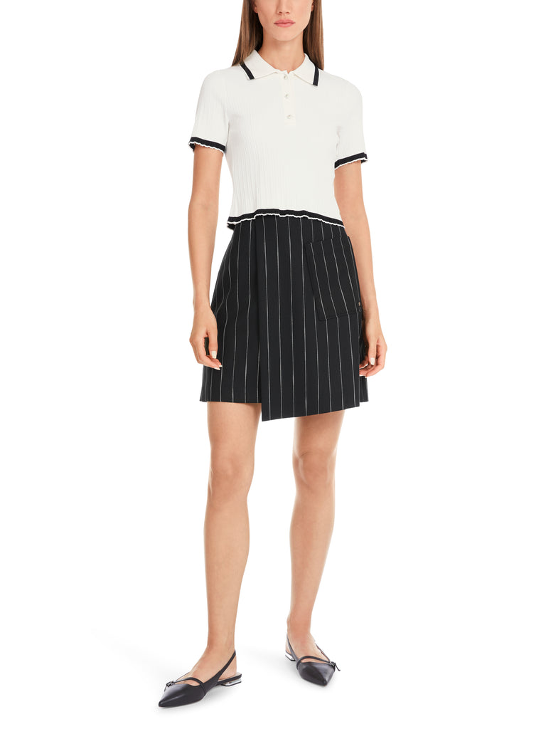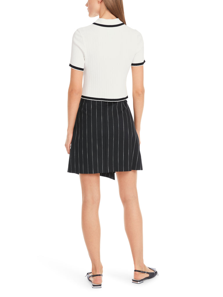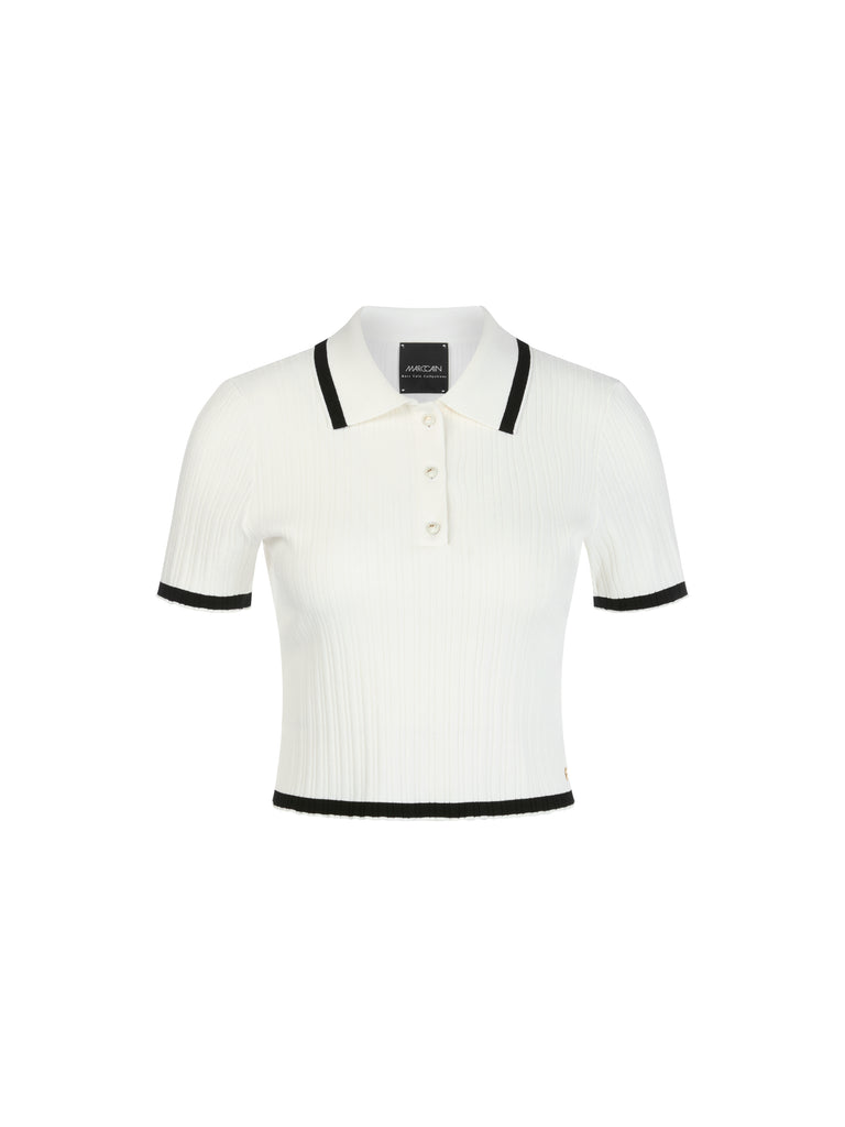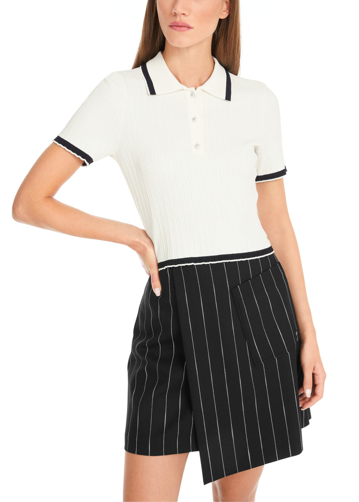 The cropped style of this figure-hugging garment is a trendy update to polo shirts. It also impresses with its cool viscose knit with contrasting stripes ─ which is why it bears the Rethink Together sustainability label. This garment is “Knitted in Germany”: the yarns are knitted on state-of-the-art knitting machines and the fabrics are finished in Germany. The individual parts such as sleeves, front etc. are sewn together at European partner companies.
