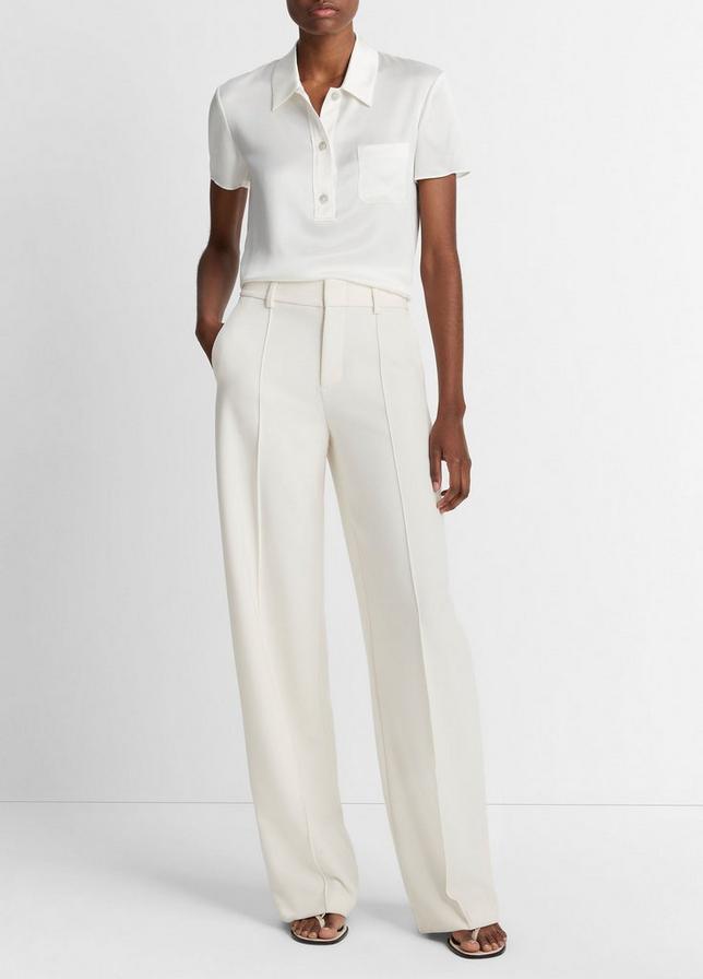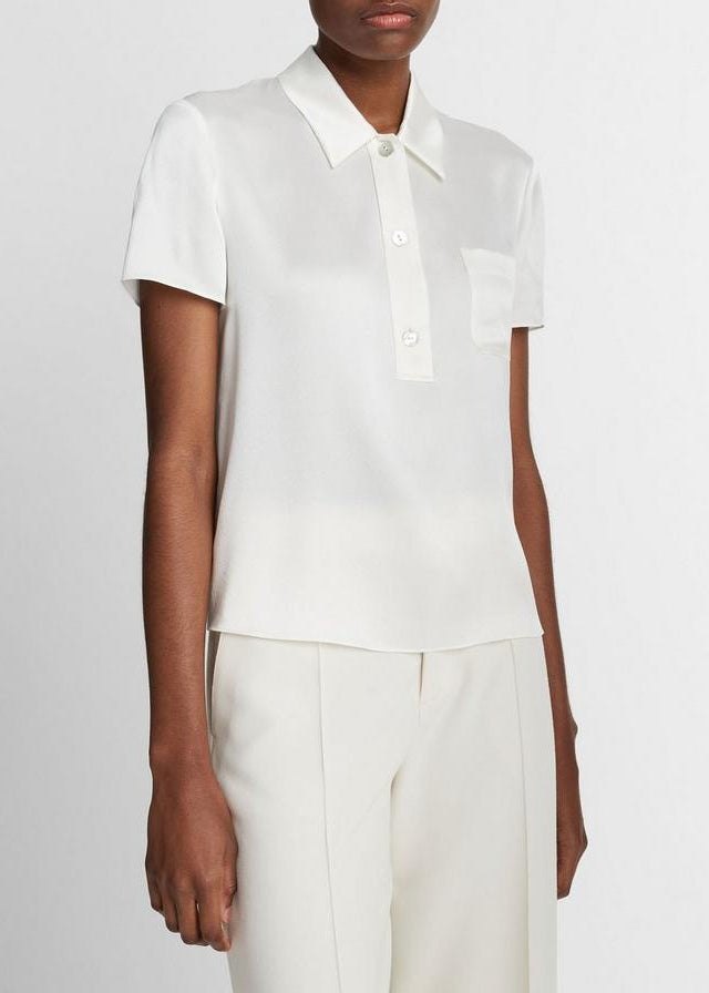 This sporty-meets-feminine polo shirt is cut with an easy, relaxed fit in luxe silk satin.