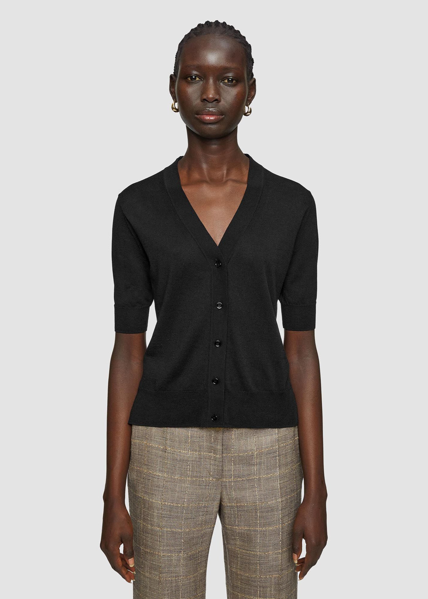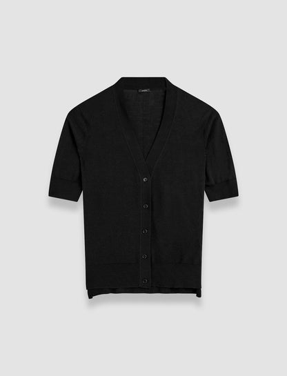 SUPERFINE SILK & COTTON CARDIGAN BLACK