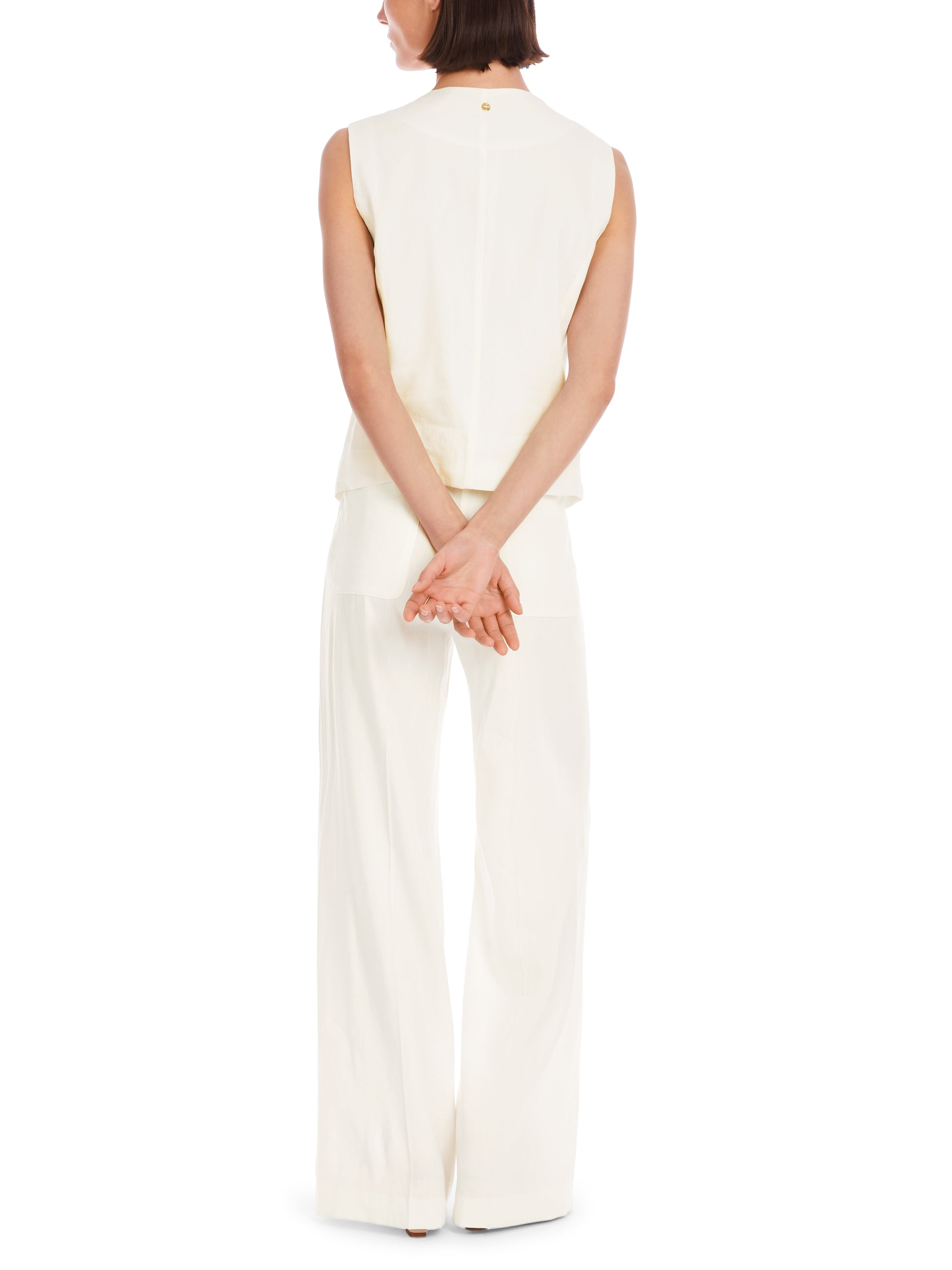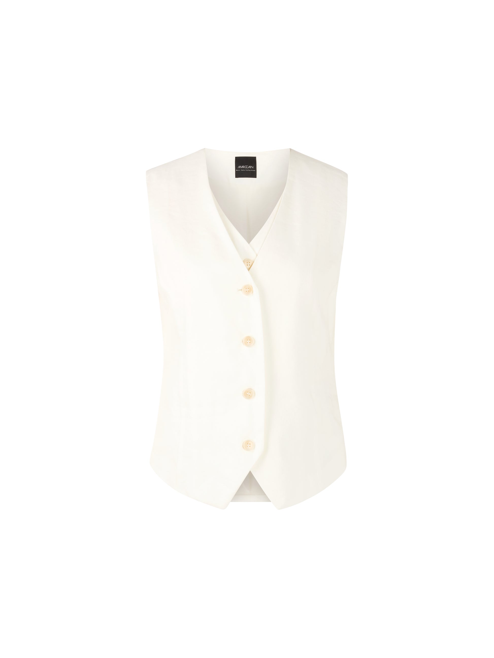 With its double front, this waistcoat has an unusual cut, allowing it to be styled as a summery top. This item also impresses with its airy linen and viscose blend. Its figure-hugging shape with a V-neck completes the style. A great duo with the matching trousers from the Trip to France collection.