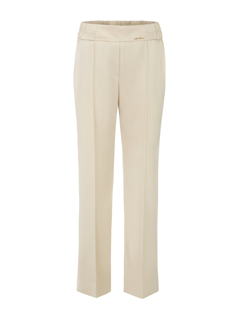 Everyday elegance: the WASHINGTON are wide, super-stretch slip-on trousers. The shiny material and soft, flowing silhouette create a wow effect. The leg is straight and accentuated with a crease. The waistband is partially elasticated and sits comfortably on the waist. The perfect complement to elegant knitwear.