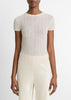 WHITE SAND WAFFLE KNIT CASHMERE & SILK S/S CREW